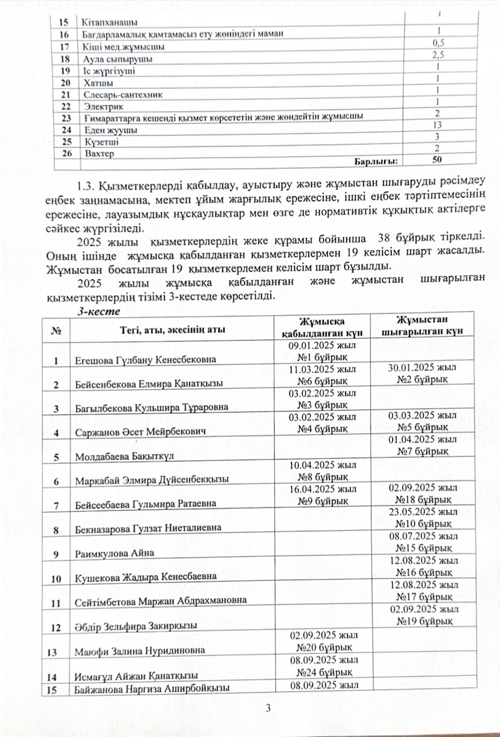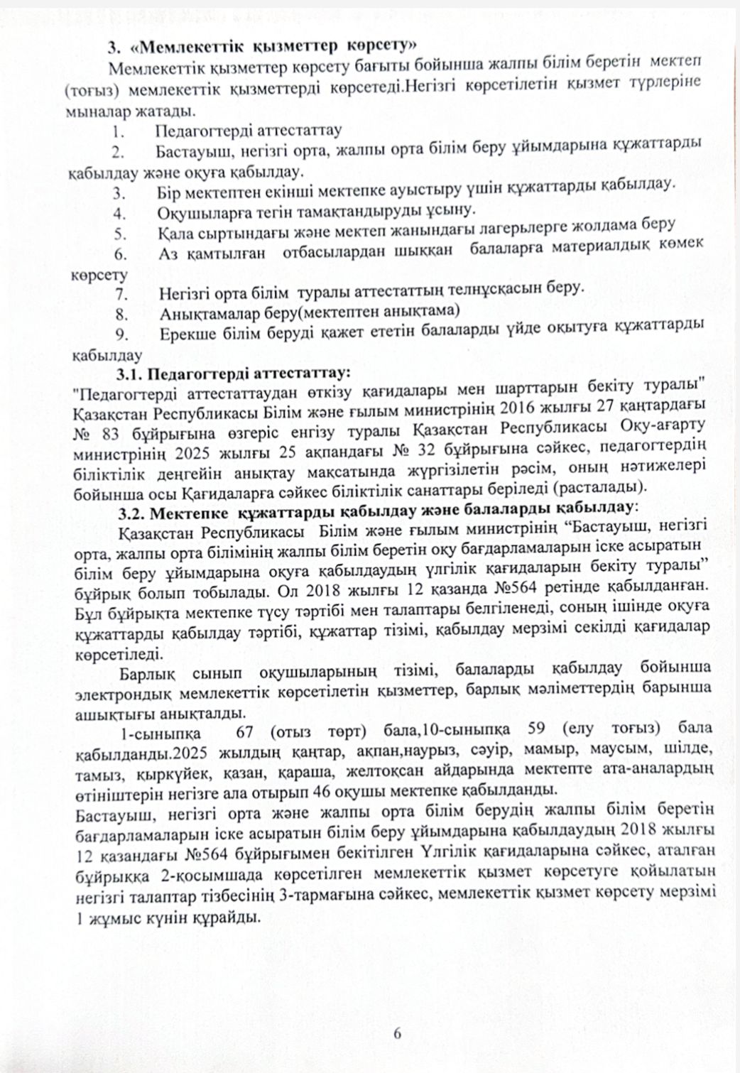 Қабылдау бөлімі :