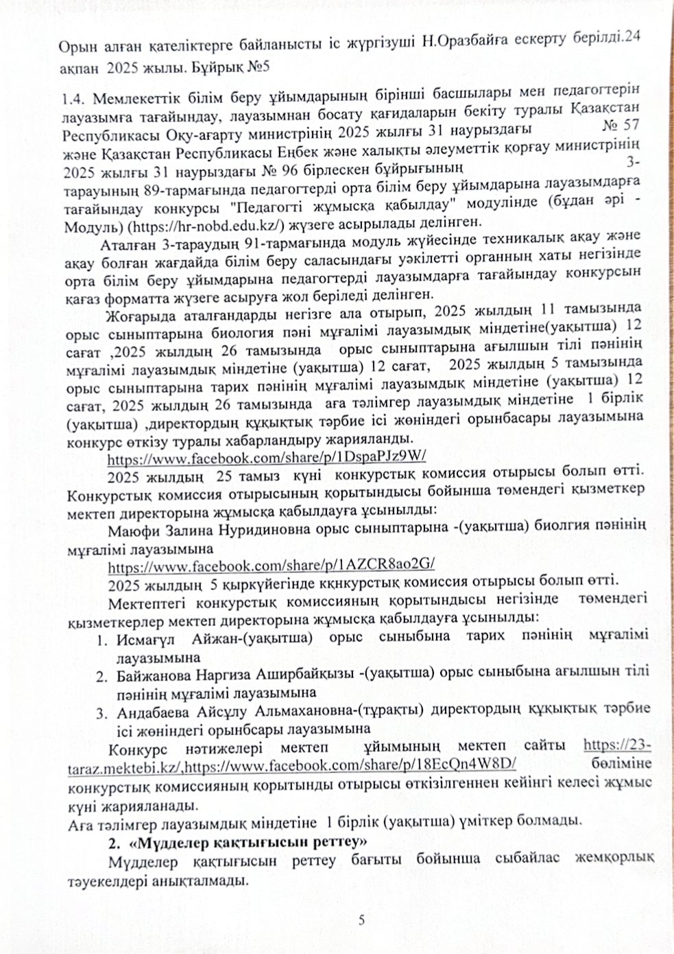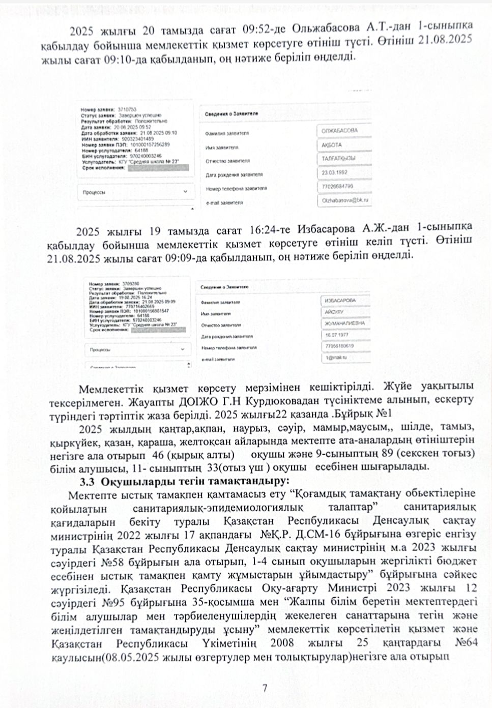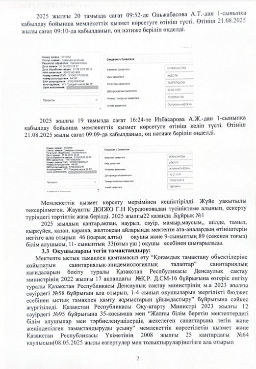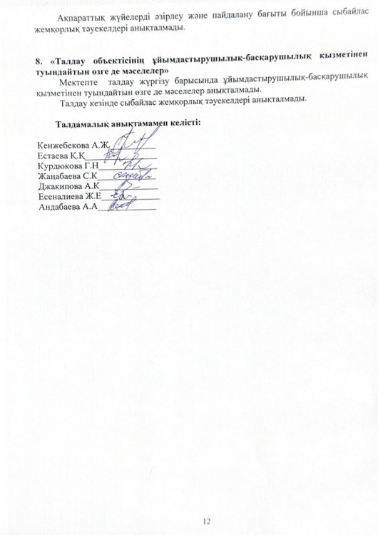 Сыбайлас жемқорлық тәуекелдеріне ішкі талдау нәтижелері туралы талдамалық анықтама » СШ №23