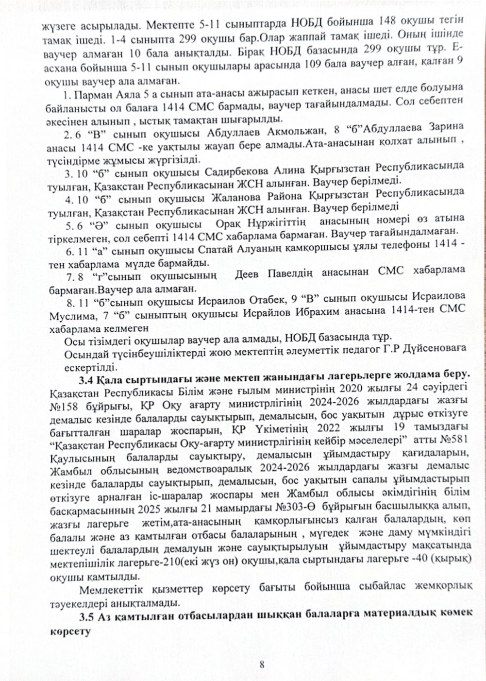 » » Сыбайлас жемқорлық тәуекелдеріне ішкі талдау нәтижелері туралы талдамалық анықтама