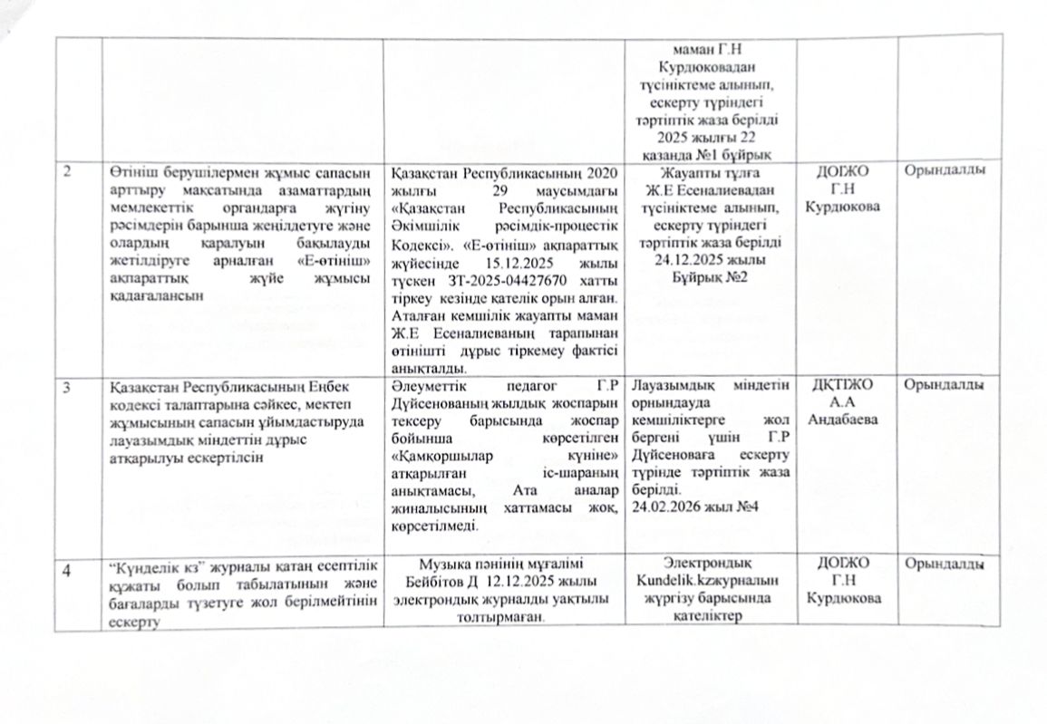 СШ №23 » Ашық орган » Сыбайлас жемқорлық тәуекелдерін ішкі талдау нәтижелері бойынша анықталған сыбайлас жемқорлық құқық бұзушылықтар жасауға ықпал ететін себептер мен жағдайларды жою жөніндегі іс-шаралар жоспары